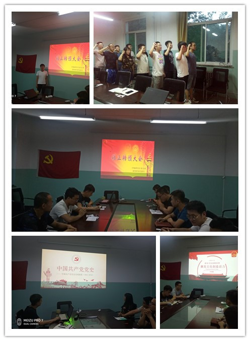 首先召开了转正转预大会,本次转预备党员的两位同志分别是张厚祖和杨韩峰,两位同志分别就自己的事迹向与会党员介绍,通过培养人、介绍人对其的评价,支部书记组织投票,全票通过了对以上两位同志的转预备申请,最后由李铮同志带领大家面向党旗宣誓,郑重承诺永远忠诚于党。