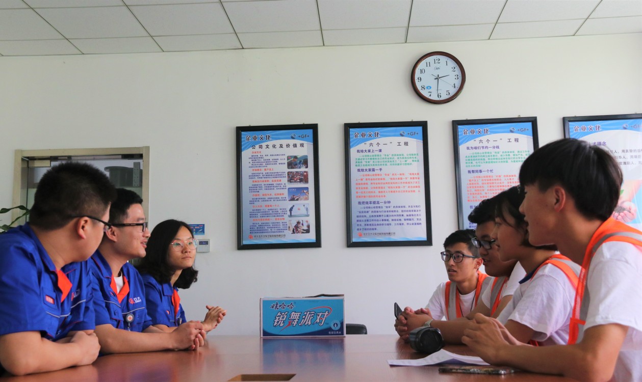 为进一步了解校友所在企业的人才所需情况,7月14日,逐梦远航实践队从位于北京的长安汽车公司出发,继续前往河北亚大塑料制造有限公司。